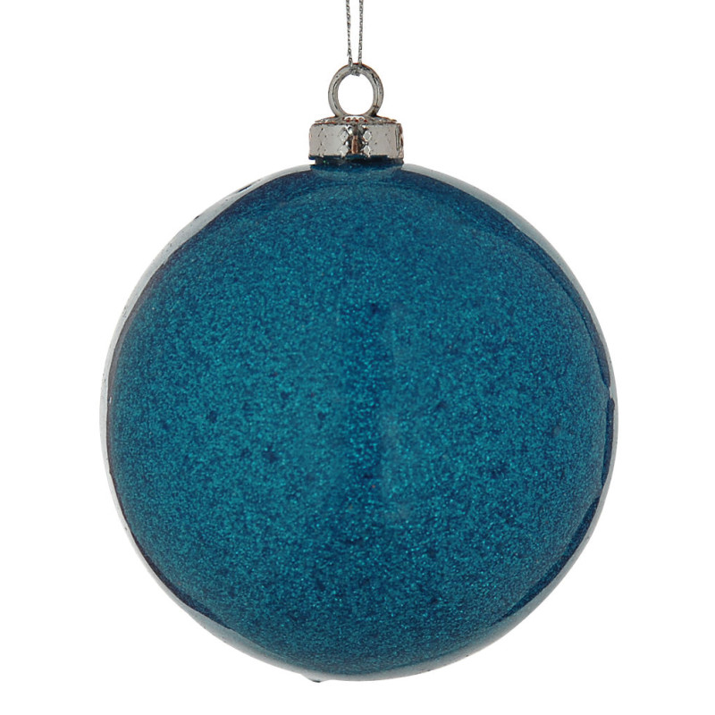 Μπλέ Πλαστική Γυαλιστερή Χριστουγεννιάτικη Μπάλα Με Γκλίτερ 10cm,Σέτ/4