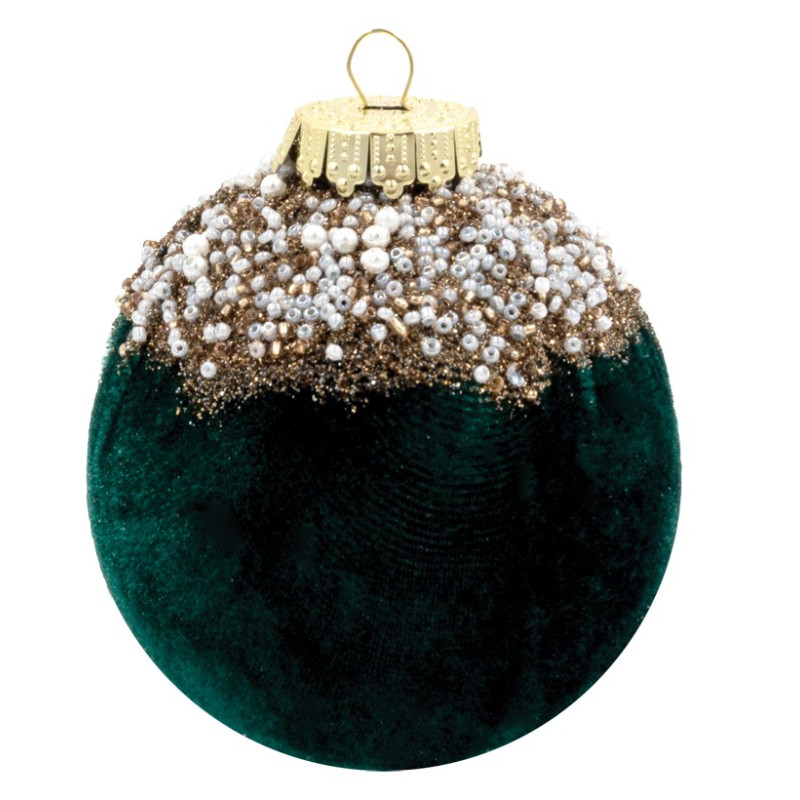 Πράσινη Βελουτέ Πλαστική Χριστουγεννιάτικη Μπάλα 10cm,Σέτ/4 Τεμαχίων