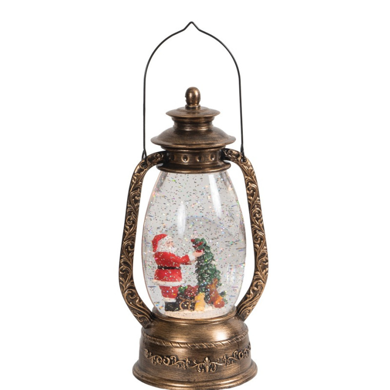 Χριστουγεννιάτικο Διακοσμητικό Φανάρι Χιονόμπαλα Με Φώς Και Μουσική Μπαταρίας Και Καλώδιο Usb 14,5 x 11,8 x 27cm