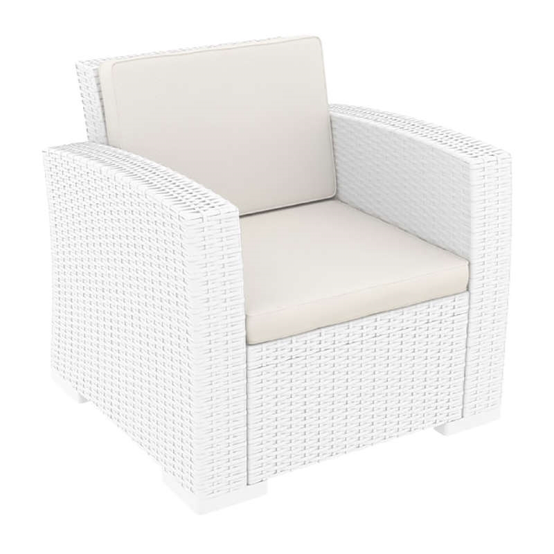 Πολυθρόνα MONACO του οίκου Siesta σε χρώμα white με μαξιλάρι, K/D, από υψηλής ποιότητας πολυπροπυλένιο με ενίσχυση από υαλώδεις ίνες (fiber glass) για απόλυτη αντοχή. Χωρίς μεταλλικό σκελετό για μεγαλύτερη αξιοπιστία στον χρόνο. Διαθέτει UV protection για μέγιστη προστασία από τον ήλιο ώστε να μην αλλοιωθούν τα χρώματα. Κατάλληλη για εσωτερική και εξωτερική χρήση. Πιστοποιημένο προϊόν από τον Ιταλικό οίκο CATAS.