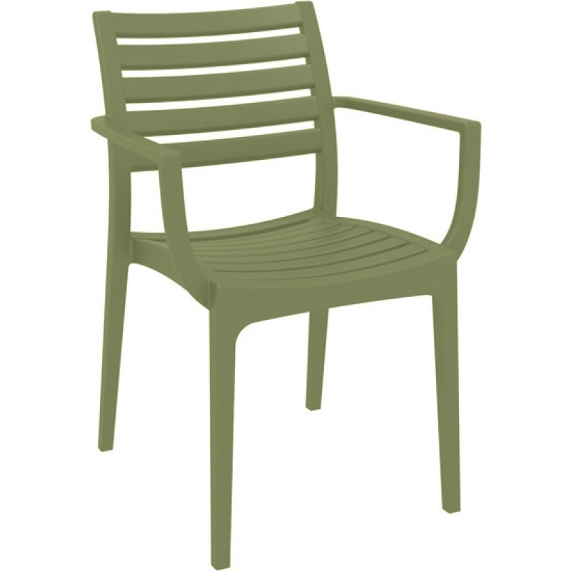 Artemis πολυθρόνα του οίκου Siesta σε χρώμα olive green.Κατασκευασμένη από πολυπροπυλένιο με 20% fiber glass για απόλυτη αντοχή στο χρόνο. Κατάλληλη για εσωτερική και εξωτερική χρήση, στοιβαζόμενη,ιδανική επιλογή για επαγγελματικούς χώρους. Πιστοποιημένο προϊόν από τον Ιταλικό οίκο CATAS.