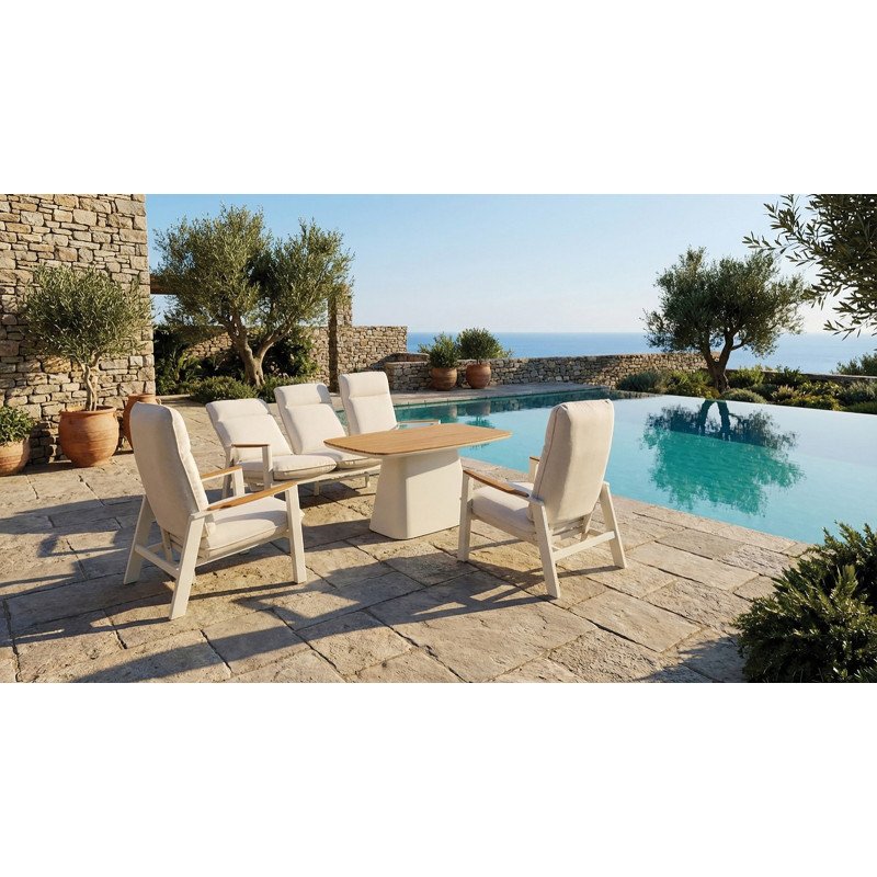 Περιλαμβάνονται: 1 Καναπές 3 Θέσεων Με Σκελετό Αλουμινίου Και Μπράτσα Ξύλο TeakΔιάσταση: 197 x 82 x 99(h)cm2 Πολυθρόνες Με Σκελετό Αλουμινίου Και Μπράτσα Ξύλο Teak Διάσταση: 74(W) x 82(D) x 99(H)cm1 Τραπέζι Με Σκελετό Αλουμινίου Και Επιφάνεια Ξύλο TeakΔιάσταση: 140(W) x 80(D) x 66(H)cmΥλικό: Σκελετός Αλουμινίου Και Ξύλο Teak * Στην Τιμή Περιλαμβάνονται Και Τα Μαξιλάρια
