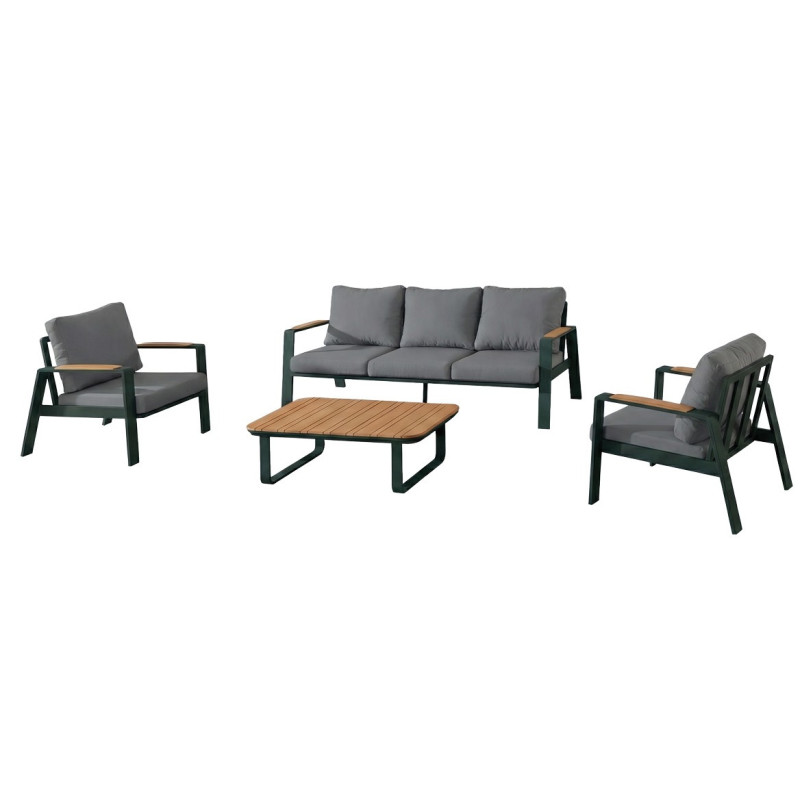 Περιλαμβάνονται: 1 Καναπές 3 Θέσεων Με Σκελετό Αλουμινίου Και Μπράτσα Ξύλο TeakΔιάσταση: 202 x 84 x 75(h)cm2 Πολυθρόνες Με Σκελετό Αλουμινίου Και Μπράτσα Ξύλο Teak Διάσταση: 78(W) x 84(D) x 75(H)cm1 Τραπέζι Βοηθητικό Με Σκελετό Αλουμινίου Και Επιφάνεια Ξύλο TeakΔιάσταση: 110(W) x 70(D) x 34(H)cmΥλικό: Σκελετός Αλουμινίου Και Ξύλο Teak * Στην Τιμή Περιλαμβάνονται Και Τα Μαξιλάρια