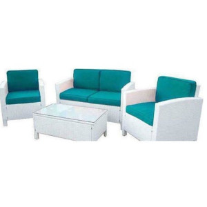 σετ 2 πολυθρόνες + 1 καναπές + 1 τραπεζάκι, με μαξιλάρια polyester σε polypropylene τύπου wicker