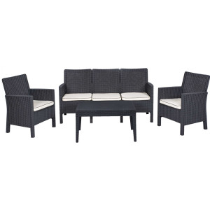 σετ polypropylene με 1 καναπέ + 2 πολυθρόνες + 1 τραπεζάκι με μαξιλάρια απο ύφασμα polyester μαύρο