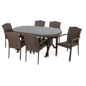 σετ κήπου 1 τραπέζι + 4 πολυθρόνες με σκελετό μεταλλικό σιδερένιο και κάθισμα από rattan
