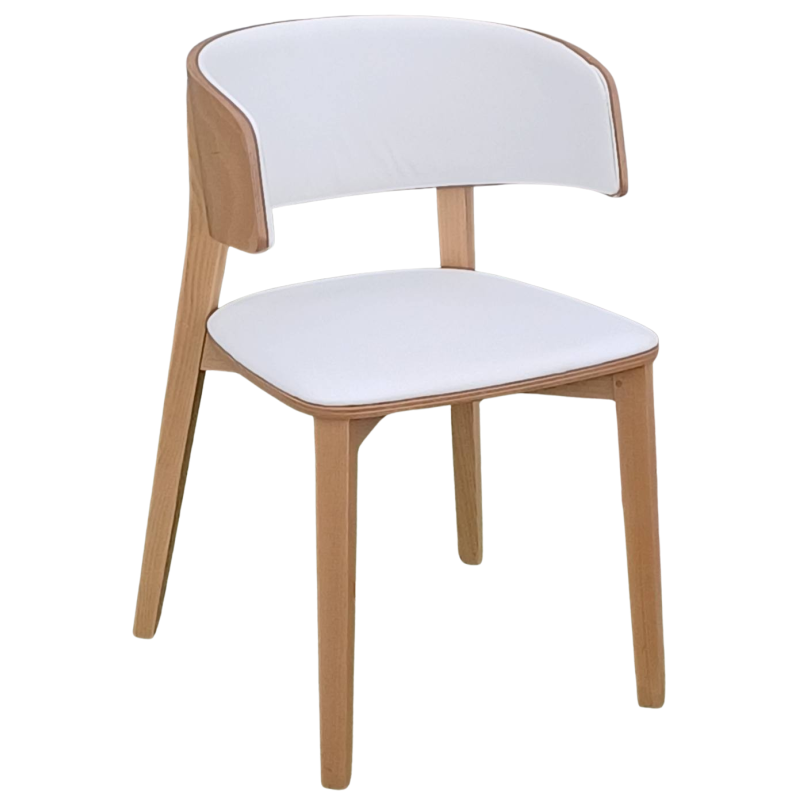 DREAM-3 καρέκλα τραπεζαρίας ξύλο ΦΥΣΙΚΟ με δερματίνη ΛΕΥΚΗ / 49x47xH76