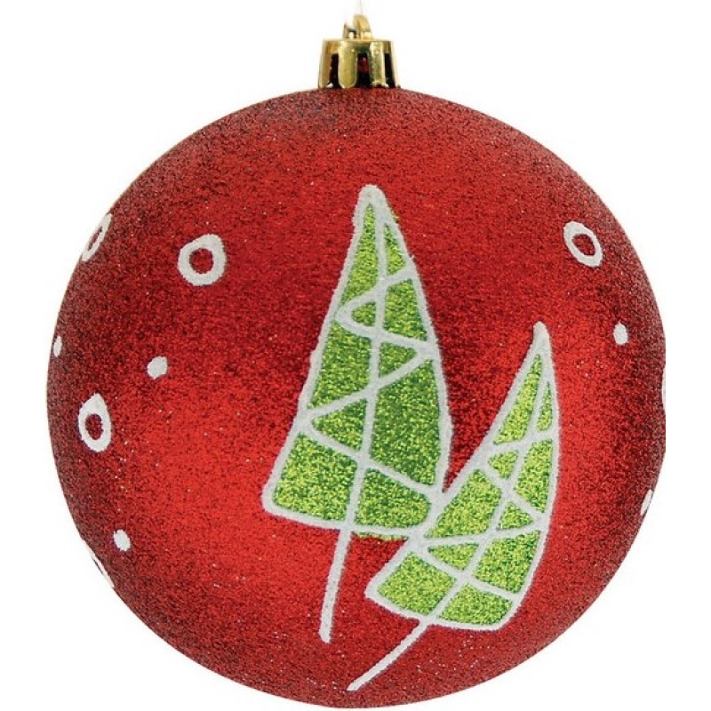 Κόκκινη Πλαστική Χριστουγεννιάτικη Μπάλα Με Glitter 10cm