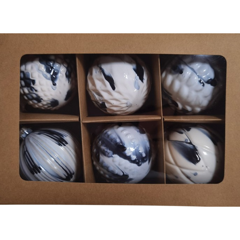Μπλέ Γυάλινη Χριστουγεννιάτικη Μπάλα 8cm , Σέτ/6 Τεμαχίων , 6 Σχέδια