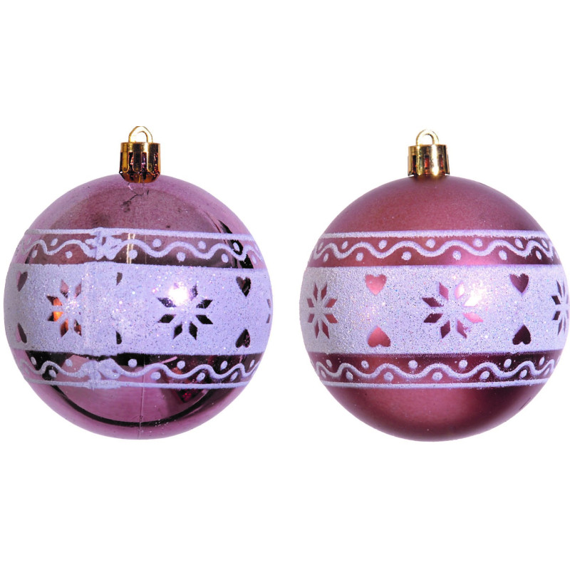 Ρόζ Γυαλιστερή Και Μάτ Πλαστική Χριστουγεννιάτικη Μπάλα 8cm ,Σέτ 6 Τεμαχίων ,2 Χρώματα