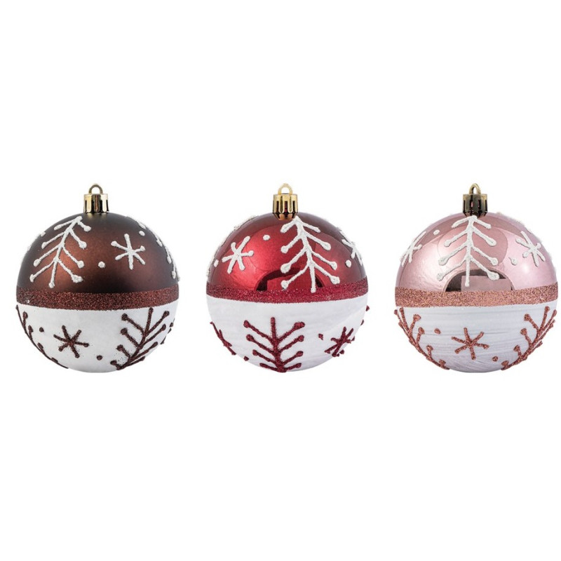 Ρόζ Χριστουγεννιάτικες Μπάλες 3 Χρώματα ,Σέτ 7 Τεμαχίων 8cm