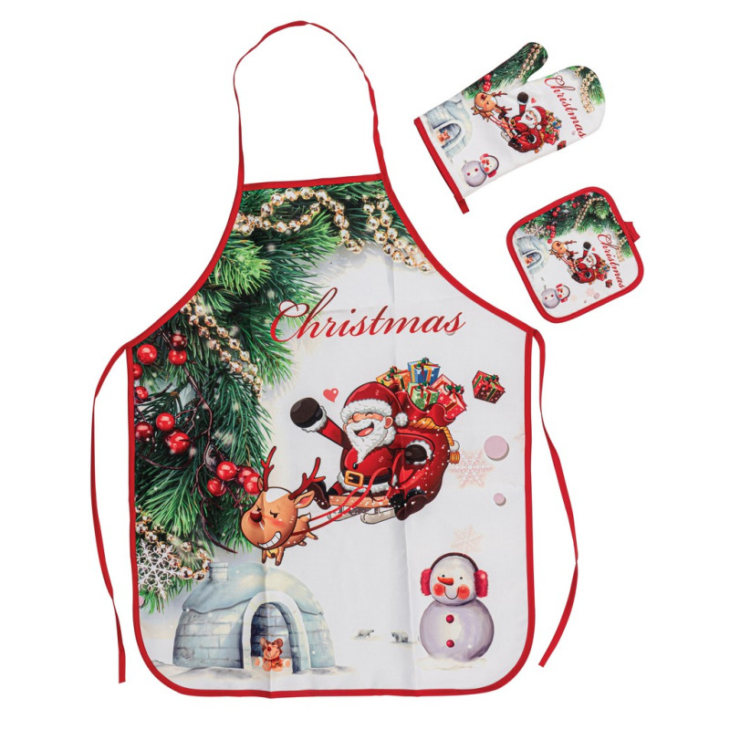 Σέτ 3 Τεμαχίων Ποδιά ,Γάντι Και Πετσέτα Φούρνου Με Χριστουγεννιάτικες Φιγούρες