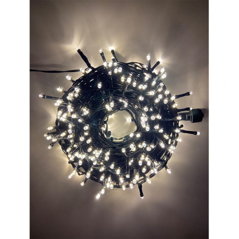 Χριστουγεννιάτικα φωτάκια led 300L IP44 με μετασχηματιστή 31V σε θερμό λευκό (warm white) χρώμα με 8 προγράμματα λειτουργίας. Είναι επεκτεινόμενα και έχουν μήκος 15m με επιπλέον 3m τροφοδοσίας. Η συσκευασία περιέχει 24 τεμάχια.