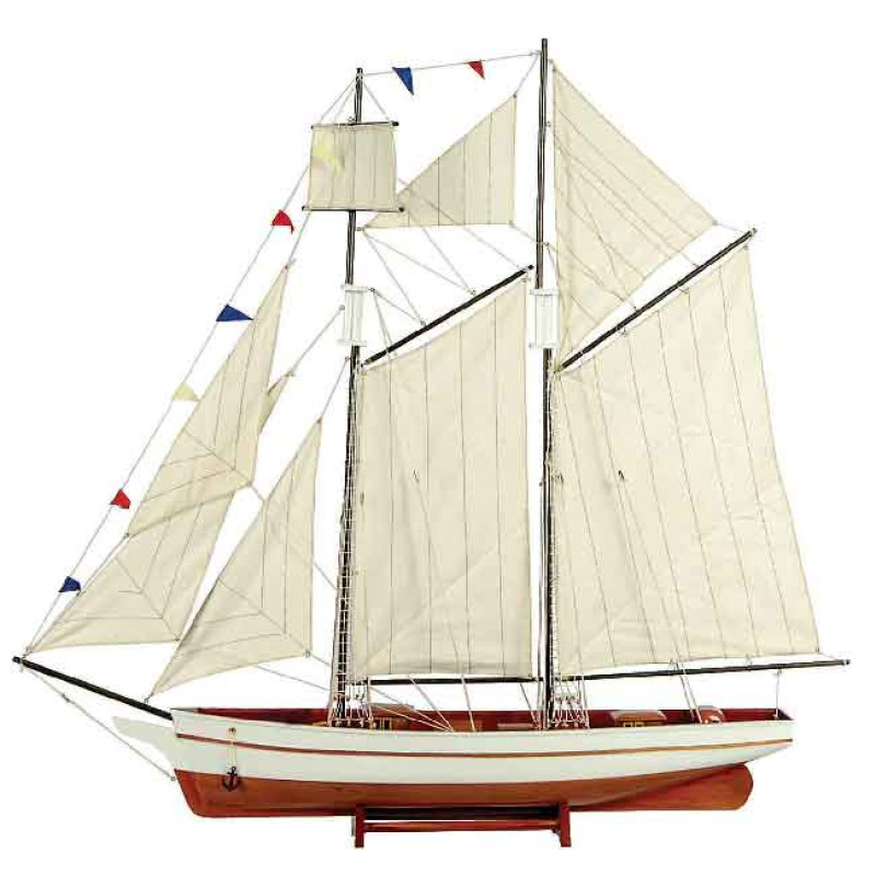 Ξύλινο Παραδοσιακό Καράβι ,Χρώμα Λευκό - Καφέ 50 x 9,5 x 45(h)cm