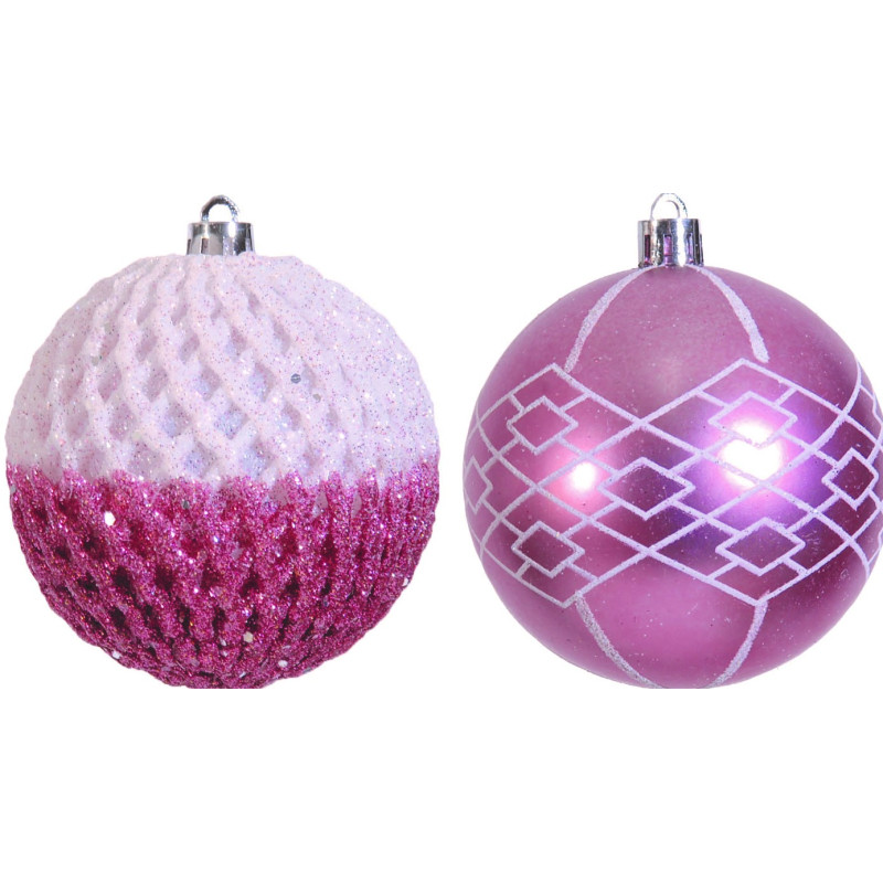 Ρόζ Χριστουγεννιάτικες Μπάλες 2 Σχέδια ,Σέτ 6 Τεμαχίων 8cm