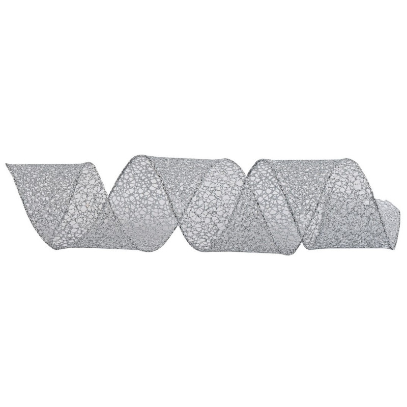 Ασημί Χριστουγεννιάτικη Κορδέλα Με Γκλίτερ 8,5 Μέτρα (9 yards)