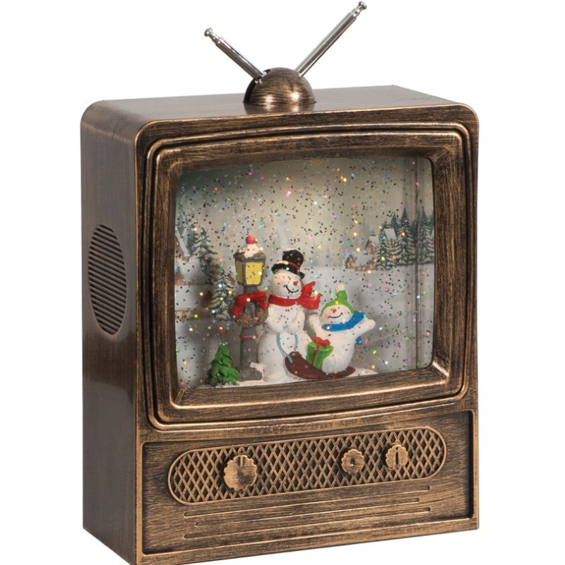 Χριστουγεννιάτικη Διακοσμητική Τηλεόραση Χιονόμπαλα Με Φώς Και Μουσική Μπαταρίας Και Καλώδιο Usb 15,5 x 7 x 23cm