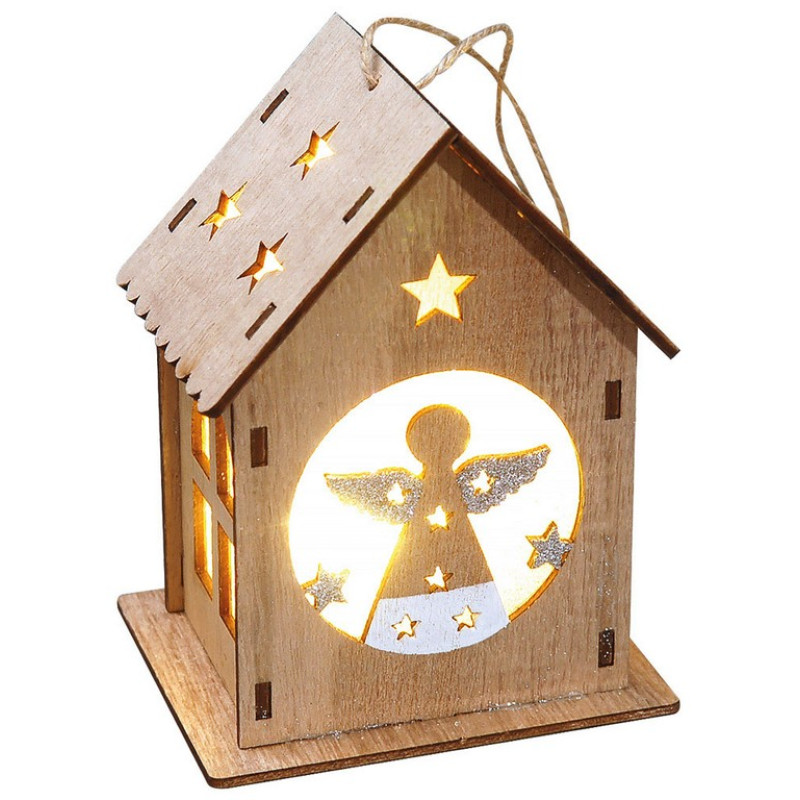 Ξύλινο Διακοσμητικό Σπιτάκι Με Led Φωτισμό Μπαταρίας ,13(H) x 9 x 8cm